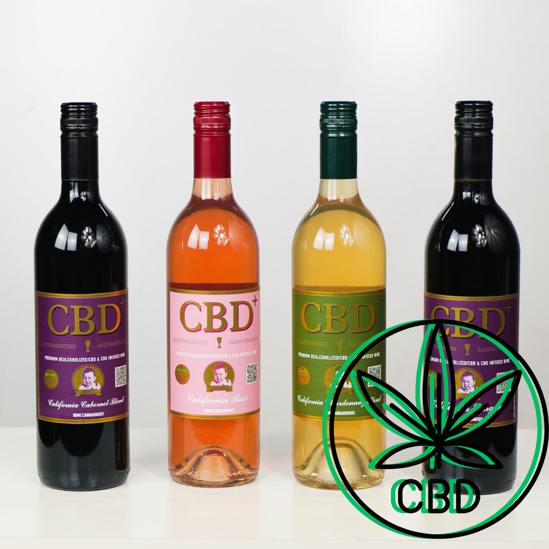 One bottle each of our delicious 3rd generation CBD+ Chardonnay Blend, CBD+ Cabernet Blend, CBD+ Rose and CBD+ Sangria (No substitutions available.)